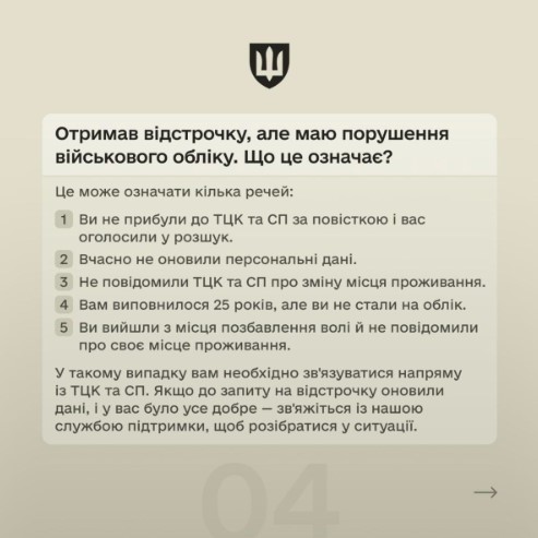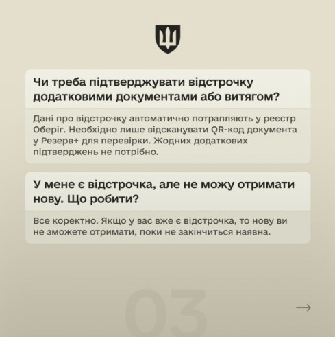 Для надання чи продовження відстрочки достатньо буде надіслати відповідний запит у застосунку Резерв+, і система автоматично перевірить право на продовження та відобразить відповідний статус в електронному військовому документі.