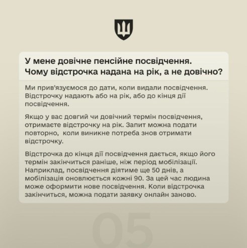 «Згодом планується розширити функціонал і для інших громадян з правом на відстрочку, включно з тими, хто має інвалідність, але не має пенсійного посвідчення. Цей процес буде проходити поетапно, оскільки ми не завжди маємо всі необхідні цифрові дані», – підкреслила представниця Міноборони.