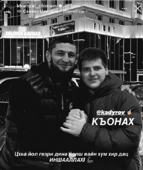 Боєць UFC Хамзат Чимаєв опублікував у соцмережах чорно-біле фото разом з Адамом Кадировим, супроводивши публікацію сумною музикою